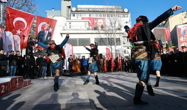 Delikliçınar Meydanı'nda düzenlenen törene Denizli Valisi Yavuz Selim Köşger, Garnizon Komutan Vekili Gökhan Çelik, Denizli Büyükşehir Belediye Başkanı Bülent Nuri Çavuşoğlu, ilçe belediye başkanları, siyasi parti ve sivil toplum kuruluşu temsilcileri, gaziler, şehit yakınları ve çok sayıda vatandaş katıldı. Atatürk Anıtı'na çelenk sunulması ve İstiklal Marşı'nın okunmasıyla başlayan törende, Denizli Büyükşehir Belediyesi Halk Oyunları Topluluğu tarafından halk oyunları gösterisi sunuldu.