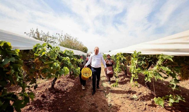 Başkan Osman Zolan, konuşmasına şöyle devam etti; "İnşallah çevreye zarar vermeden daha fazla üretip, geleceğimizi karartmadan sofraya giden ürünlerin insanlara zarar vermeyecek şekilde üretmemiz gerekiyor. Sizlere hassasiyetinizden dolayı çok teşekkür ediyorum. İnşallah hep beraber böyle üretmeye devam edelim. İnşallah daha çok üreteceğiz. Her zaman üreticilerimizin yanındayız" diye konuştu. Denizli Büyükşehir Belediyesinin kentin 4 bir tarafında verdiği ceviz fidanı, elma sirkesi, yağlık ayçiçeği tohumu, silajlık mısır tohumu, damızlık koç ve teke desteği, tarımsal sulama borusu, tarımsal alet ve makina desteklerini anlatan Başkan Zolan, 50'yi aşkın kalemde çiftçi ve üreticiye destek verdiklerini kaydetti. Konuşmaların ardından Başkan Zolan ve beraberindekiler Büyükşehir Belediyesinin destekleriyle zararlılara karşı feromon yayıcı tel desteği verilen üzüm bağında incelemede bulundu, üzüm hasadı yaptı.