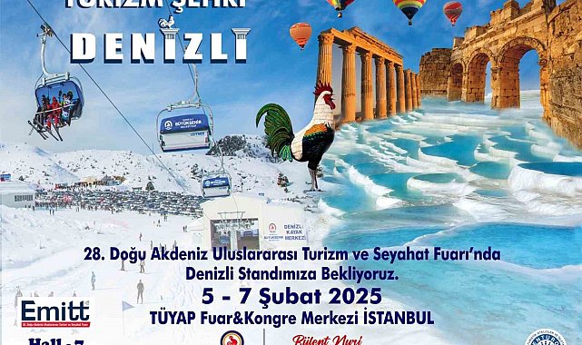 Denizli Büyükşehir Belediyesi, 5-7 Şubat 2025 tarihleri arasında İstanbul TÜYAP Fuar Merkezi'nde 28'inci Uluslararası Doğu Akdeniz Turizm ve Seyahat Fuarı - EMITT 2025'te boy gösterecek. Dünyanın en büyük 4 turizm fuarı arasında gösterilen her yıl 30 Bine yakın sektör profesyonelini ve dünyanın dört bir yanındaki tatil destinasyonlarının ve seyahat şirketlerinin sunduğu yeni ve heyecan verici seyahat fırsatlarından faydalanmak isteyen binlerce tatil tüketicisini ağırlayan fuarda 'Turizm Şehri Denizli' Denizli Büyükşehir Belediyesince temsil edilecek.