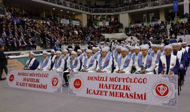 Denizli İl Müftülüğü himayesinde, ilçe müftülüklerine bağlı hafızlık Kur'an kurslarında eğitimlerini başarıyla tamamlayan 168 hafız öğrenci için icazet merasimi düzenlendi. Pamukkale Üniversitesi Spor Bilimleri Fakültesi Kapalı Spor Salonu'nda gerçekleştirilen programa; Denizli Valisi Yavuz Selim Köşger, Pamukkale Kaymakamı Uğur Bulut, Merkezefendi Kaymakamı Abdullah Demir, Muğla ve Aydın İl Müftüleri, il ve ilçe müftülüğü yöneticileri, kamu kurumlarının temsilcileri, sivil toplum kuruluşları, din görevlileri, hafızların aileleri ve çok sayıda vatandaş katıldı.