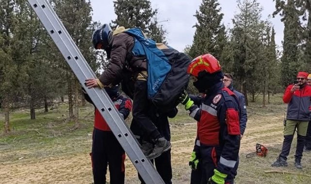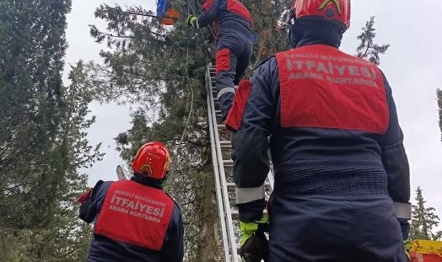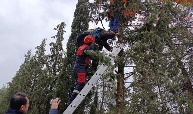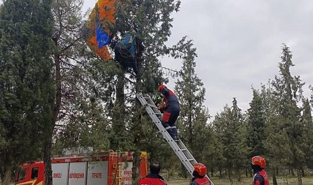 Denizli'de ağaçta asılı kalan yamaç paraşütçüyü itfaiye kurtardı
