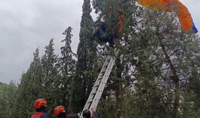 Denizli'nin Pamukkale ilçesinde uçuş sırasında kontrolünü kaybederek ağaç dallarına takılan yamaç paraşütü pilotu, itfaiye ekipleri tarafından kurtarıldı.