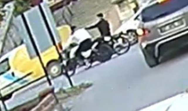 Meydana gelen sıra dışı motosiklet kazasının güvenlik kamerası görüntüleri ortaya çıktı. Cadde üzerinde faaliyet gösteren bir işletmenin güvenlik kameralarına yansıyan görüntülerde, dönüş yapmak için yavaşlayan siyahlı motosikletlinin yön belirmek için kolunu aldırması ve bu sırada yandan geçmeye çalışan beyazlı motosikletlinin kola çarparak yere düştüğü anlar yer aldı.
