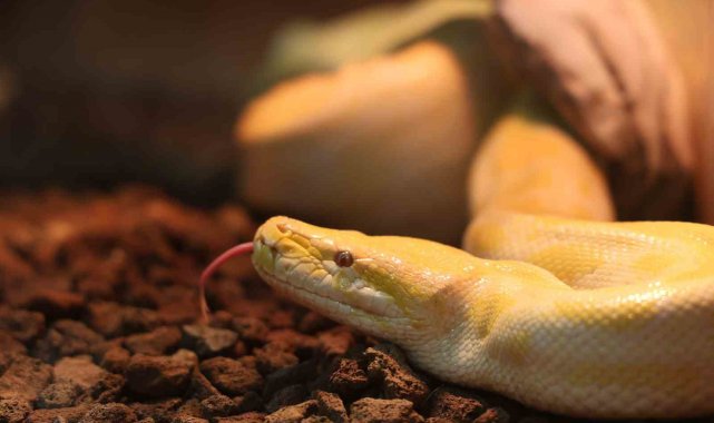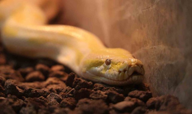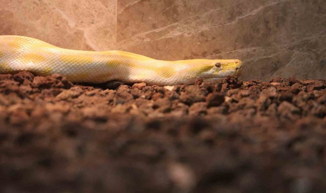 Denizli'de bir alışveriş merkezinde el konulan Albino Burma pitonu, Konya'da koruma altına alındı.
