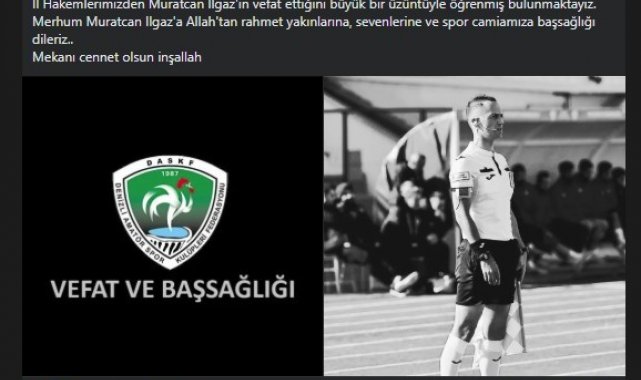DENİZLİ(İHA) – Denizli'nin Pamukkale ilçesinde yaşayan 33 yaşındaki hakem Muratcan Ilgaz'dan birkaç gündür haber alınamaması üzerine yakınları evinde ölü olarak buldu.