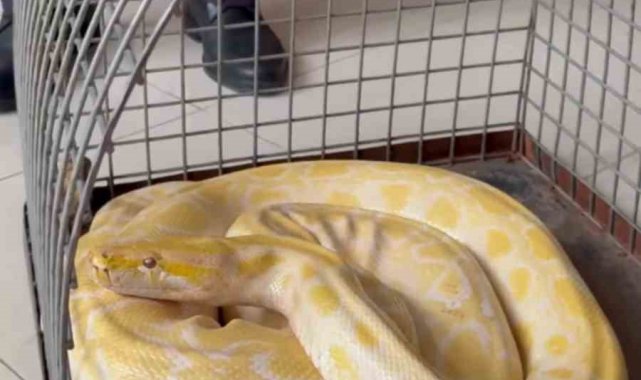 Denizli'de bir alışveriş merkezinde düzenlenen gösteride kullanılan Albino Burma Pitonu, yapılan denetimlerde gerekli izin belgelerinin bulunmadığının tespit edilmesi üzerine ekipler tarafından el konularak koruma altına alındı.
