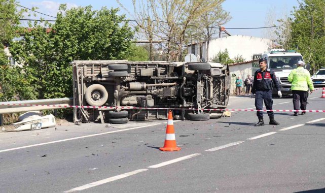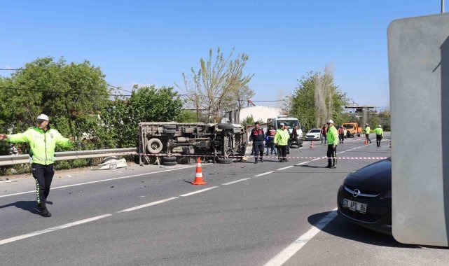 Denizli'de kontrolsüz kavşaktan dönmek isteyen kamyonet, ana yoldan gelen otomobille çarpıştı. Çarpışmanın etkisiyle devrilen kamyonetin sürücüsü hayatını kaybetti, 3 kişi de yaralandı.