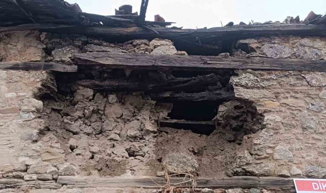 Denizli'ni Buldan ilçesinde kullanılmayan metruk kerpiç binanın duvarı çöktü.