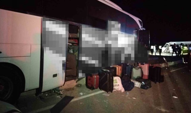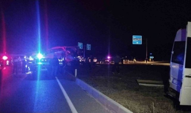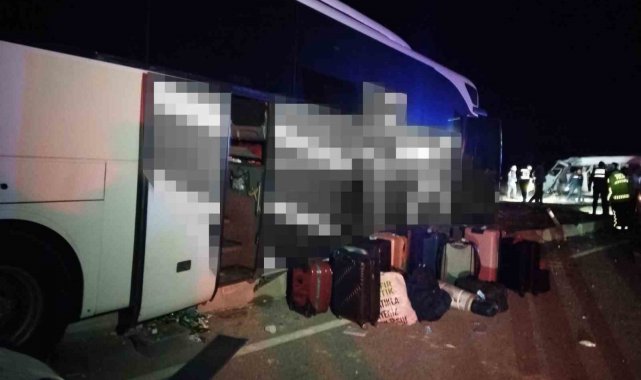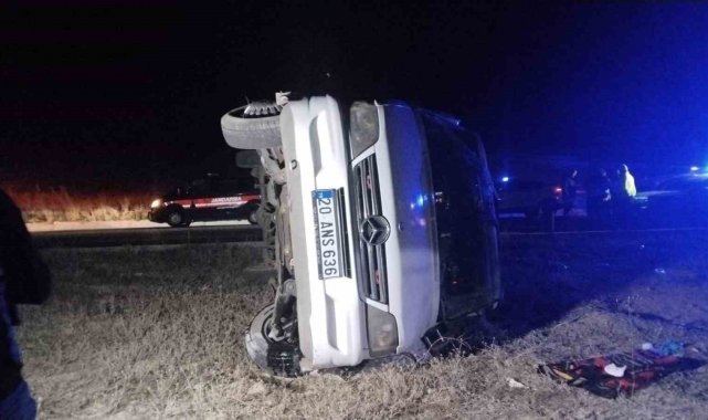 Denizli'de minibüs ile şehirlerarası yolcu otobüsü çarpıştı. Minibüsün devrildiği, otobüsün yoldan çıktığı kazada otobüs şoförü hayatını kaybederken, 13 kişi de yaralandı.