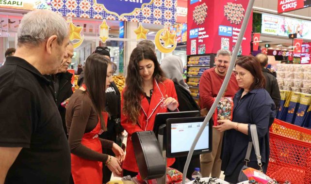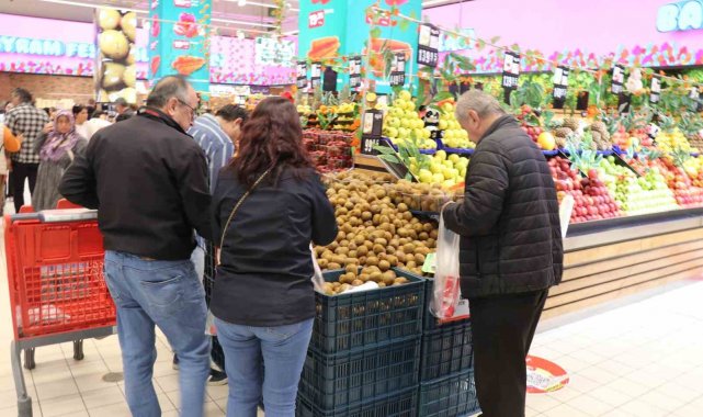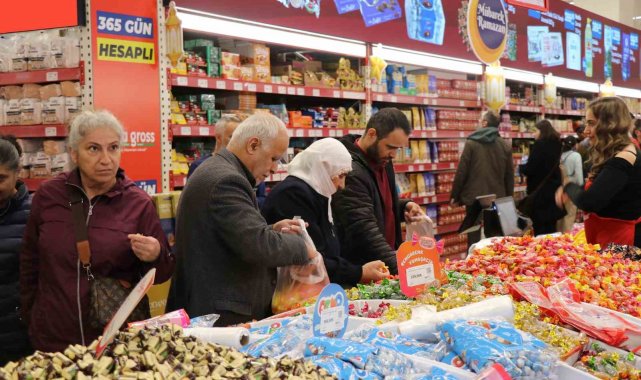 Denizli'de bayram alışverişini ekonomik hale getirmek isteyen vatandaşlar, indirim kampanyalarına devam eden alışveriş merkezlerinde yoğunluk oluşturdu. Ramazan ayı boyunca süren indirimli satış geleneğini bayram süresince de devam ettirme kararı alan market yönetimi; özellikle bayramın vazgeçilmezi olan şekerleme grupları ile temel gıda maddeleri olan kırmızı ve beyaz et reyonlarında büyük fiyat avantajları sundu. Manav reyonunda da taze ürünlerin uygun fiyatla raflarda yer almasıyla birlikte market içerisinde adeta adım atacak yer kalmadı. Bayram sofralarını donatmak isteyen Denizlililer, marketin sunduğu bu fırsatlara yoğun ilgi göstererek uzun kuyruklar oluşturdu. Bayram öncesi alışverişini uygun fiyatlarla yapmak isteyen çok sayıda vatandaşın akın ettiği markette zaman zaman yoğunluk yaşandığı gözlendi.