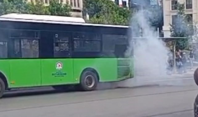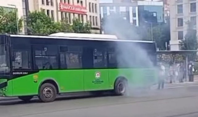 Denizli'de belediyeye ait halk otobüsü yolcu almak için durakta durduğu esnada otobüsün motor kısmından dumanlar çıkmaya başladı. Dumanların sardığı otobüs şoför tarafından hızlıca tahliye edildi.