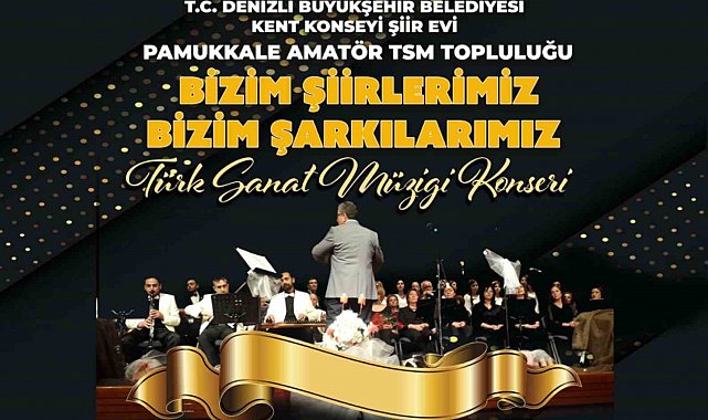 Denizli Büyükşehir Belediyesi, Kent Konseyi Şiir Evi ve Pamukkale Amatör TSM Topluluğu ortaklığında "Bizim Şiirlerimiz, Bizim Şarkılarımız" adlı Türk Sanat Müziği konseri düzenleyecek.