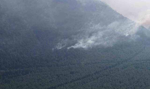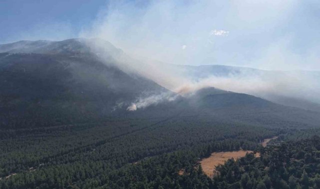 Denizli'de yanan orman sahası havadan görüntülendi