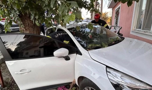 Denizli'de yoldan çıkan otomobil önce ağaca sonra eve çarptı