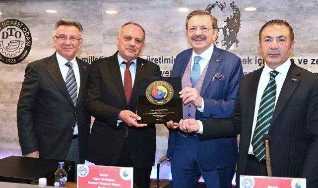 Toplantının sonunda, DTO Yönetim Kurulu Başkanı Uğur Erdoğan günün ve ziyaretlerinin anısına hazırladıkları hediyelerini TOBB Başkanı Hisarcıklıoğlu'na takdim ederken TOBB delegeliğinde 20 yılı dolduran DTO Meclis Üyesi Murat Çetintaş da teşekkür plaketini Hisarcıklıoğlu'nun elinden aldı. Büyük bir coşkuyla geçen ve kalabalığın salondan taştığı etkinlik, toplantıya katılanların TOBB Başkanı Hisarcıklıoğlu ve DTO Başkanı Erdoğan ile günün anısına çektirdikleri fotoğrafla sona erdi.
