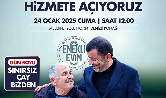 Denizli Büyükşehir Belediye Başkanı Bülent Nuri Çavuşoğlu'nun emekli yurttaşlara yönelik hazırladığı kentin ilk Emekli Evim'in resmi açılış programı 24 Ocak 2025 Cuma günü saat 12.00'de gerçekleştirilecek. Emekli Evim, Altıntop Mahallesi Meserret bölgesinde bulunan Denizli Konağı'nda hizmet verecek. Geçim sıkıntısı çeken ve enflasyon altında ezilen emeklilerin keyifli ve sağlıklı bir yaşam sürmeleri için gayret ettiklerini belirten Denizli Büyükşehir Belediye Başkanı Bülent Nuri Çavuşoğlu, emeklilerin sosyal aktivitelerini artıracak ve onlara günlük yaşamda daha aktif roller alabilecekleri bir ortam hazırlamanın mutluluğunu yaşadıklarını kaydetti.