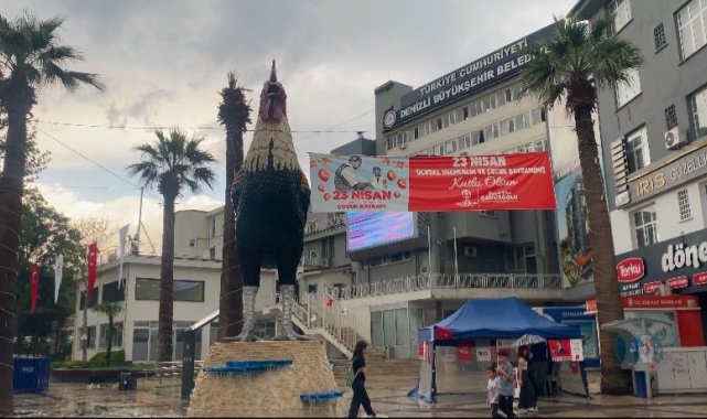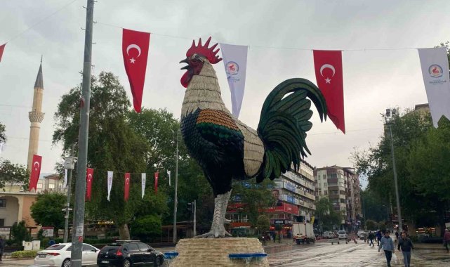Denizli'nin simgesi olan 4 metre yüksekliğindeki cam horoz heykeli, şiddetli dolu yağışından nasibini aldı. Fındık büyüklüğünde düşen dolu nedeniyle 7 bin cam parçasından oluşan horozda hasar oluştu.