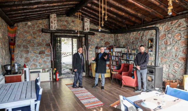 Ziyaretin sonunda Çameli Belediye Başkanı Cengiz Arslan, İl Kültür ve Turizm Müdürü Adem Özel'e günün anısına hediye takdim etti.