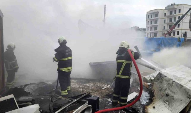 Hatay'da şantiye alanında depo olarak kullanılan 3 konteyner yanarak kullanılmaz hale geldi.