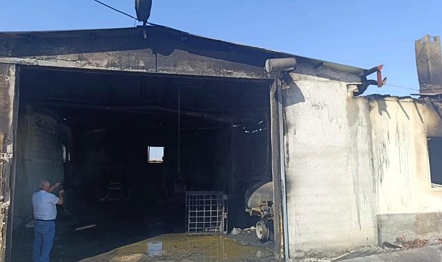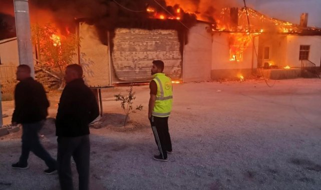 Depoda çıkan yangında 2 traktör, ev ve gübreler yandı