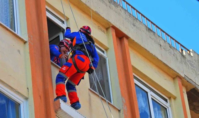 Senaryo gereği mahsur kalan vatandaşların olduğu bilgisi üzerine arama kurtarma ekipleri bölgeye sevk edildi. Mahsur kalan kişilerin itfaiyeci usulü, travma tahtası ve yüksek açı kurtarma teknikleri kullanılarak kurtarılması uygulamalı olarak gerçekleştirildi.
