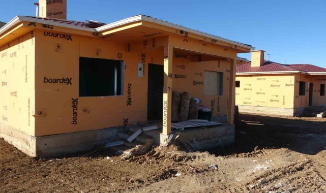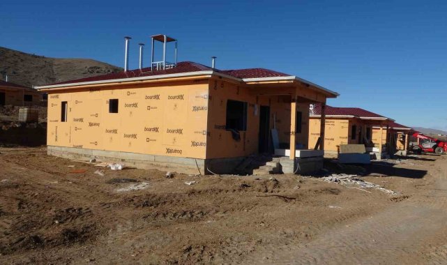 Deprem bölgesi Malatya'da inşa çalışmaları sürüyor. Akçadağ ilçesine bağlı Keklikpınarı Mahallesi'nde 2 ay önce yapımına başlanan 60 çelik konstrüksiyonlu konutun yapımında ise sona yaklaşıldı.