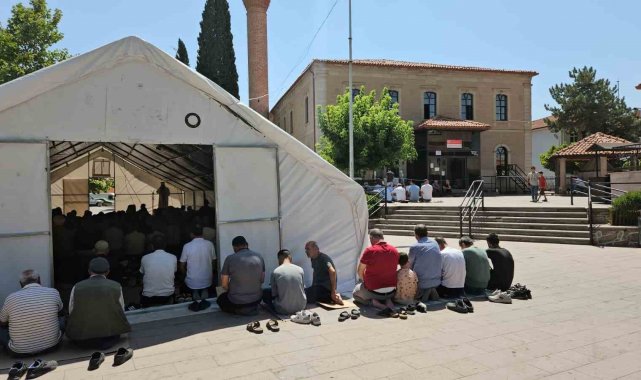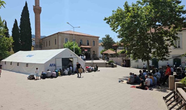 Balıkesir Sındırgı'da depremde hasar gören camiler ibadete kapanınca cuma namazı çadırlarda kılındı