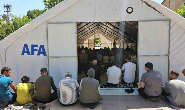Deprem bölgesinde cuma namazı çadırlarda eda edildi