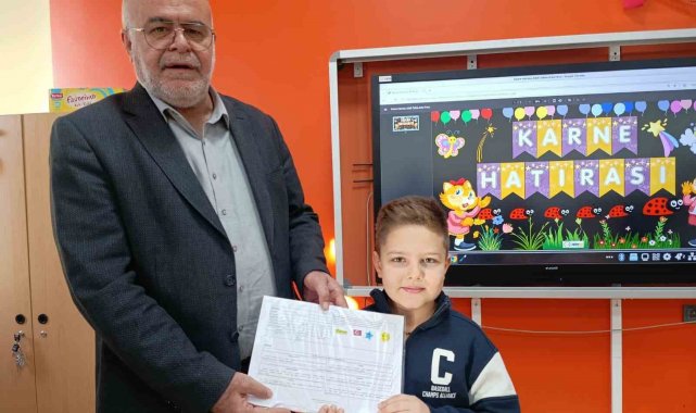 Deprem bölgesindeki Haydar Aliyev İlkokulu'nda karne heyecanı