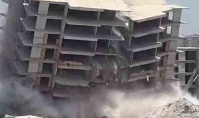 Deprem etkisi yaşatan 12 katlı binanın yerle bir olduğu anlar kamerada