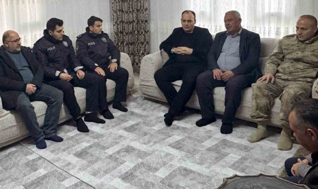 Şehidin yakınları ve Kaymakam İşçimen, mezara karanfil bırakıp dua etti.