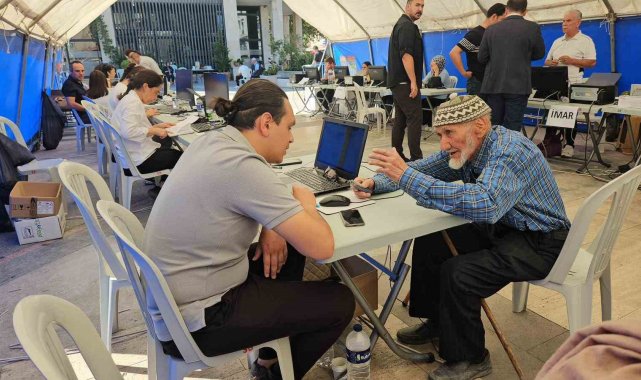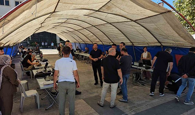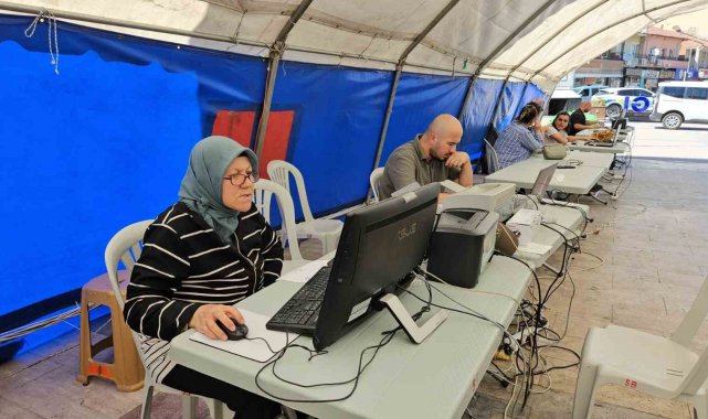 Vatandaşların ve belediye çalışanlarının güvenliği için alınan karar doğrultusunda hizmet binası yerine Cumhuriyet Meydanı'na kurulan çadırda çalışmalarını sürdüren belediye ekipleri, hem sahada hem de meydanda vatandaşların ihtiyaçlarını karşılıyor.