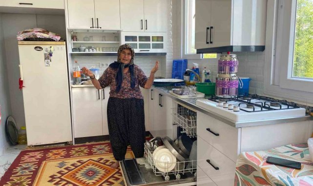 "Oğlan everdim kız çıkardım, benim böyle bir evim olmadı" diyen Cennet nine, "Kahramanmaraş'ta olan depremde 2 seneden beri evim yoktu burada konteynerde kalıyordum. Allah devletimize, Türkiye Cumhuriyeti'ne zarar vermesin sağ olsunlar. Çocuklarımla evime geldim yemeğimizi yedik binlerce şükürler olsun. Evim çok iyi böyle bir ev görmedik tuvaleti, banyosu içinde tertemiz. Devletimizin ayağına taşa değmesin" dedi.