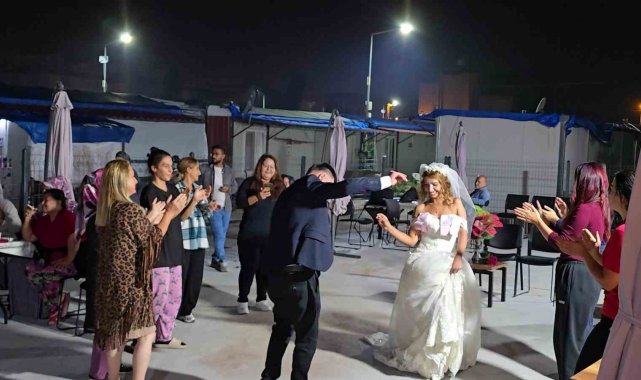 Depremde enkazdan kurtarılan Sezgin, konteyner kentte komşuları tarafından düzenlenen düğünle dünya evine girdi