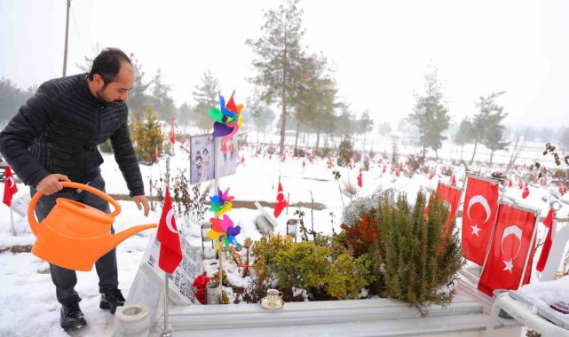 Yaşadığı acıyı anlatan Emre Bozkurt, "6 Şubat depremlerinde eşimi ve iki evladımı kaybettim. Geriye onarılan kabirleri kaldı. Üç yıl oldu ama zaman nasıl geçiyor, inan bugün bile anlamak mümkün değil. Her gün, her saniye zaten bana 6 Şubat. Kaybettiğim gün ne hissettiysem bugün de aynı acıyı taşıyorum. Sevgi adres değiştirdi. Kızım Arya Beren 5,5 yaşındaydı, anaokuluna gidiyordu. Egemen 3,5 yaşındaydı, o da okula başlayacaktı ama nasip olmadı. Hepimizin hayali, umudu vardı, o küçücük yavruların bile umutları vardı. Son gün kar topu oynamıştık. Bugün kabirlerine geldim, üzerlerini örten karı temizliyorum. Beyaz örtü her şeyi saklayabilir ama benim yitirdiklerimi asla saklayamaz. O günden bugüne her gün buradayım. Eşim kahveyi çok severdi, bugün ona kahve yapıyorum bu benim ona selamım, 'buradayım, sizi bırakmadım' demek" diye konuştu.