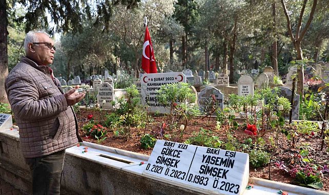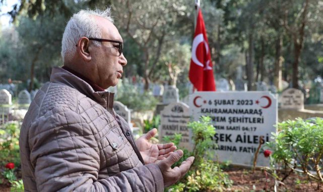 Kahramanmaraş'ta meydana gelen 6 Şubat depreminin yıl dönümünde Ebrar Sitesi'nde yaşayan ve 7. katta oturan oğlu Baki, gelini Yasemin ve torunları Gökçe, Yağız ve Ayaz'ı Kozan'da toprağa veren baba Şaban Şimşek, depremin yıl dönümünde evlatlarını kabri başında gözyaşları ile andı.