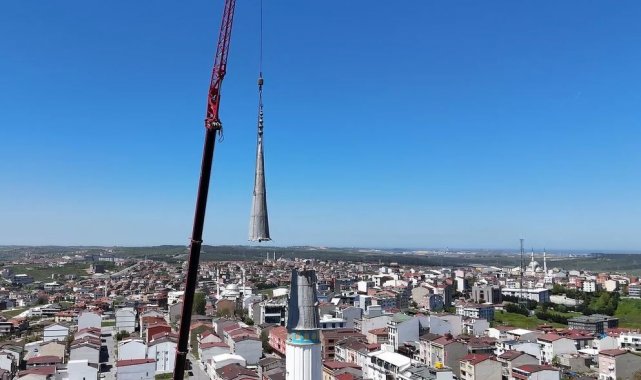 Depremde hasar gören Arnavutköy Sıddık Camii'nin minaresi söküldü