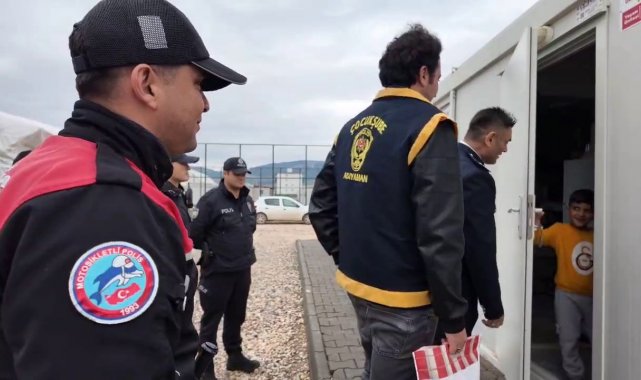 Depremde ailesini ve yakınlarını kaybeden 7 yaşındaki Çınar Efe Toker bayramda kimsenin kendilerine ziyarete gelmediğini söyleyince, polis ekipleri Çınar'ı ziyaret ederek sevindirdi.