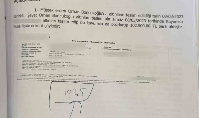 Öte yandan, meslekten ihraç edilen E.C.'nin ise savcılığa verdiği ifadesinde kimseyi mağdur etmediğini, altınları teslim ederken karışıklık yaptığını, bu sebeple birçok kişinin altınını gidip yeniden evlerinden aldığını söylediği öğrenildi.