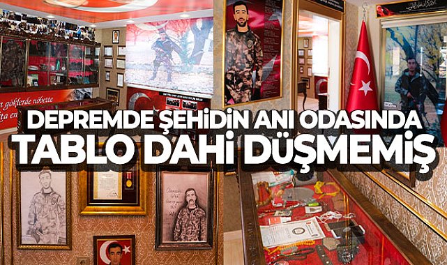 Depremde şehidin anı odasında tablo dahi düşmemiş