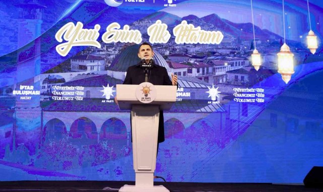 Depremin ardından Hatay'ın yeninden dirildiğini söyleyen Bakan Kurum, "Sözlerimin hemen başında, asrın felaketinde hayatını kaybeden tüm şehitlerimizi bir kez daha rahmetle yad ediyorum. Ramazan ayımızın hayırlara vesile olmasını diliyorum. Bugün Hatay için yola çıkarken düşündüm. Şöyle geriye baktığımda, devlet görevinde bulunduğum süreler boyunca hemen her Ramazan'da Hataylı kardeşlerimizle aynı sofrada oturmak nasip oldu. Bugün de bizi öz evladı gibi bağrınıza bastınız. Ben tüm Hataylı kardeşlerime candan teşekkür ediyorum. Sağ olun, var olun. Hatay'ımız, bizim gönlümüzde bir tanedir. Çünkü buranın, havası başka, suyu başka, insanı başka, kalbimize nakşettiği maneviyatı bambaşka. İnanıyorum ki; sizinle aramızda sonsuz bir muhabbet var. Ben 6 Şubat depremlerinde bu şehrin sokaklarındaydım. O dimdik duran babaların gölgesinde çalıştım, gözyaşlarıyla dua eden annelerle sabahladım. Çok şey gördüm. Ama o gecelerde bir şey daha gördüm ki asla unutamam. Hatay'ın her sokağında acı vardı ama karamsarlık yoktu, hüzün vardı ama eğilmek yoktu. O gün kendime şunu söyledim. 'Yeniden Diriliş' kavramı bir şehir olsaydı o şehrin adı Hatay olurdu; 'Vatan sevdalısı' bir topluluğa isim olarak verilseydi, o ismin sahibi Hataylılar olurdu" dedi.