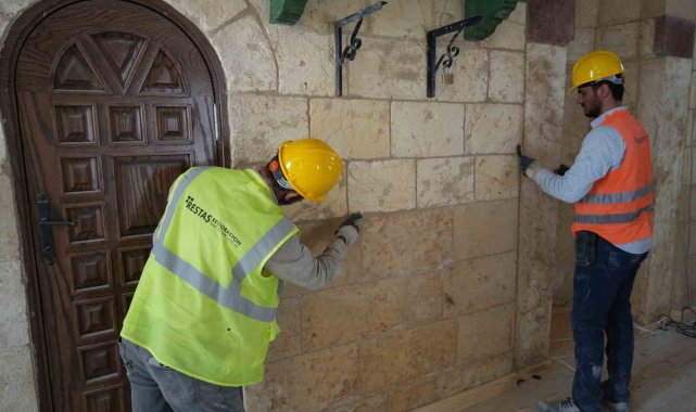 Gaziantep'te, 6 Şubat depremlerinde hasar gördüğü için ibadete kapatılan tarihi asırlık camilerde restore çalışmaları aralıksız sürdürülüyor.