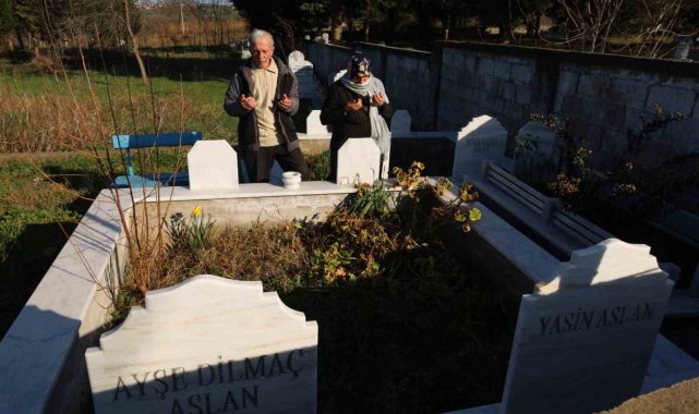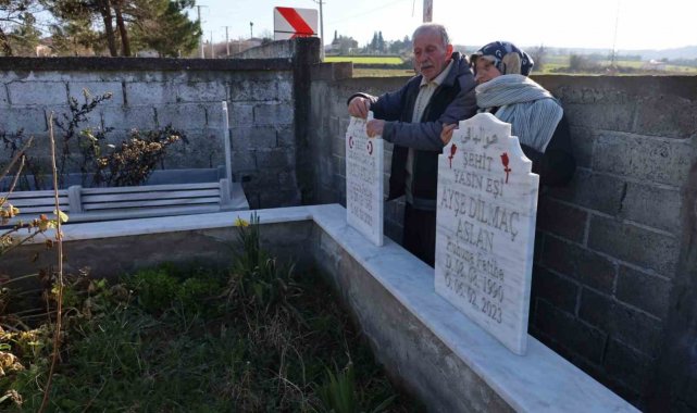 Depremde Hatay Antakya'da görev yapan oğlunu, gelinini ve torunlarını kaybeden Tenzile ve Feyzullah Aslan, depremin yıl dönümünde kaybettikleri canları mezarlıkta andı. Mezarlıkta dua ettikten sonra konuşan Tenzile Aslan, "6 Şubat depreminde oğlumu, gelinimi ve iki torunumu kaybettim. Acımız büyük acı. Vefat ettiklerinde 13 yıllık evliydiler, şimdi 16 yıl olacaktı. Depremden 1 ay önce muhabbet ederken deprem olsa nereye saklanırız diye konuşmuşlar. Yasin 'koridora sığınırız, orada hiçbir şey üzerimize düşmez' demiş. Nitekim de orada buldular evlatlarımı. Enkazda birbirlerine sarılmış vaziyetteydiler" dedi.