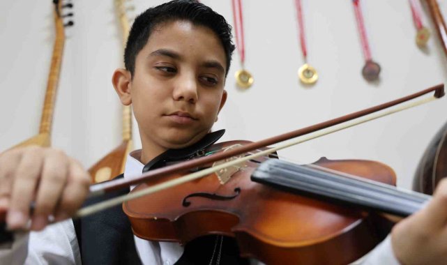 Deprem sonrası kemanla tanıştığını ifade eden Çınar Kaplan, "12 yaşındayım, altıncı sınıfa gidiyorum ve keman çalıyorum. Benim keman çalma serüvenim birkaç yıl önce depremle başladı. Elazığ depremi olduğunda bizim ev hasar aldı ve konteynere taşınmak zorunda kaldık. Bir süre sonra pandemi geldi, Covid-19 derken sokağa çıkma yasakları başladı ve sürekli evdeydik. Çok sıkılıyorduk. O dönemde Onur Şahin çocukları kötü alışkanlıklardan uzak tutmak için enstrüman dersleri veren kurs açtı. Bunu duyunca çok sevindik ve hemen başvuru yaptık. Sağ olsun kabul etti. Aslında annem beni bağlamaya yazdıracaktı ama ben keman istedim. Annem kemanın zor olduğunu söyledi ama ben denemek istedim. İki üç ay kursa gittim. Orada hocam bana öğretti. Üç aylık kurs bitince ve devam edecek imkanımız olmadığı için okullar da açılınca kursa gidemedim. Okuldan geldikten sonra evde internetten ve telefondan videolar izleyerek kendi kendime çalıştım ve kemanı devam ettirmeye çalıştım" şeklinde konuştu.