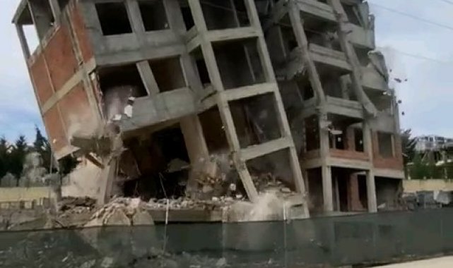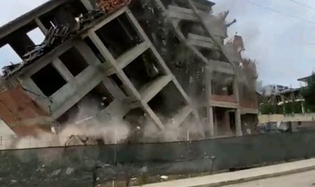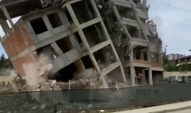 Depreme dayanıksız bina saniyeler içinde yıkıldı
