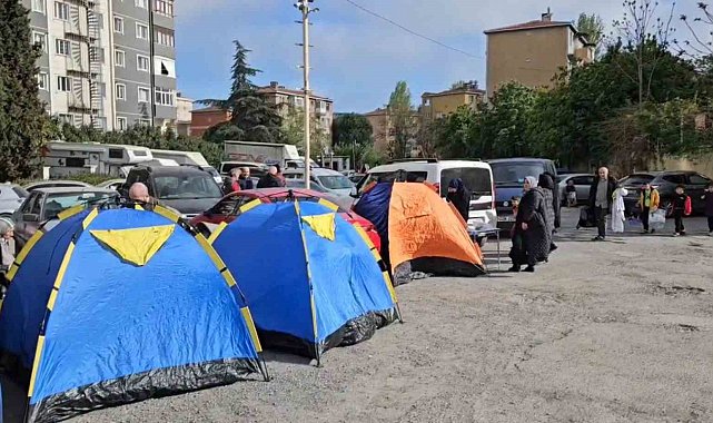 İstanbul'daki 6,2 büyüklüğündeki depremin ardından Güngören'de vatandaşlar, geceyi geçirmek için park ve bahçelere çadır kurdu.