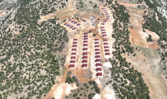 Asrın felaketinde yıkımın yaşandığı Kahramanmaraş'ın Dulkadiroğlu ilçesi Kazanlıpınar Mahallesi'nde 80 köy evinin yapımı sürüyor.