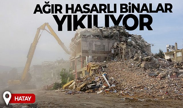 Depremin vurduğu Hatay'da ağır hasarlı binalar yıkılıyor