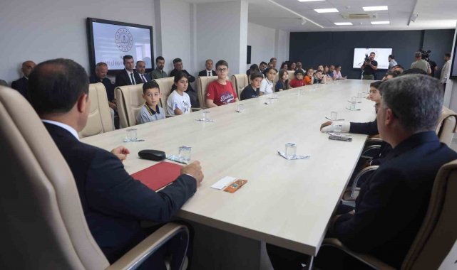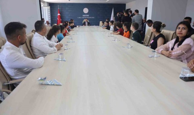 Kahramanmaraş merkezli depremlerde en çok hasarı alan Hatay'da bin 604 eğitim kurumunun yaklaşık 3'te biri kullanılamaz hale geldi. Hatay Valiliği ve hayırseverlerin katkılarıyla 161 eğitim kurumunun inşaatı tamamlanırken, bazı okullarda güçlendirme çalışmaları devam ediyor. Bölgede eğitim kalitesinin ve öğrencilerin başarı seviyelerinin artması için yürütülen çalışmalar sonuç veriyor. İlköğretim ve ortaöğretim öğrencilerini kapsayan bursluluk sınavında Hatay'da 16 öğrenci 500 tam puan almayı başarırken, 2 öğrenci de Türkiye derecesi elde etti. Hatay Valisi Mustafa Masatlı, 18 başarılı öğrenci ve velileriyle İl Milli Eğitim Müdürlüğü'nde bir araya geldi. Öğrencilerle sohbet eden Vali Masatlı, başarılı öğrencilere plaket ve hediye takdiminde bulundu.