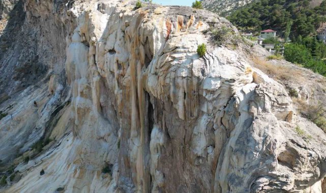 Tokat'ın Reşadiye ilçesinde 86 yıl önce yaşanan Erzincan depremi sonrası ortaya çıkan termal su kaynağının çevresinde traverten oluşturdu.